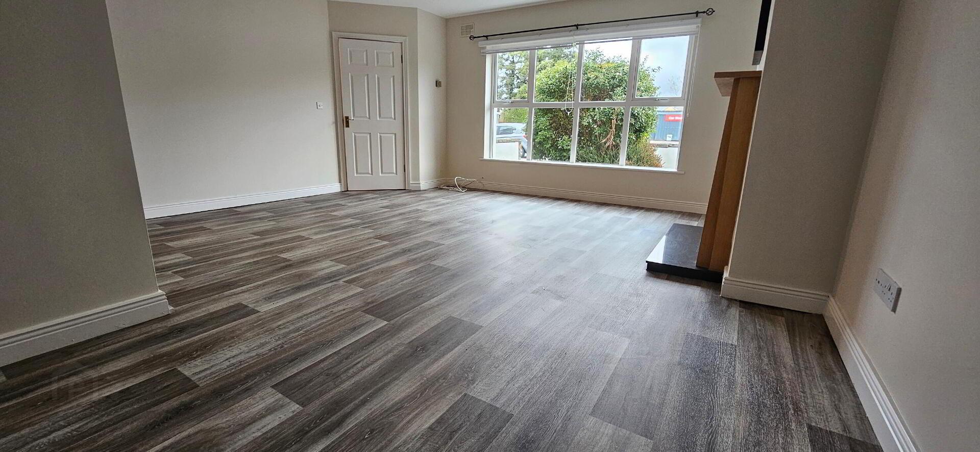 5.84m x 5.31m Large open space, new vinyl flooring, open fire with timber mantle, granite hearth and granite inset, radiator, power points, tv point, phone point.