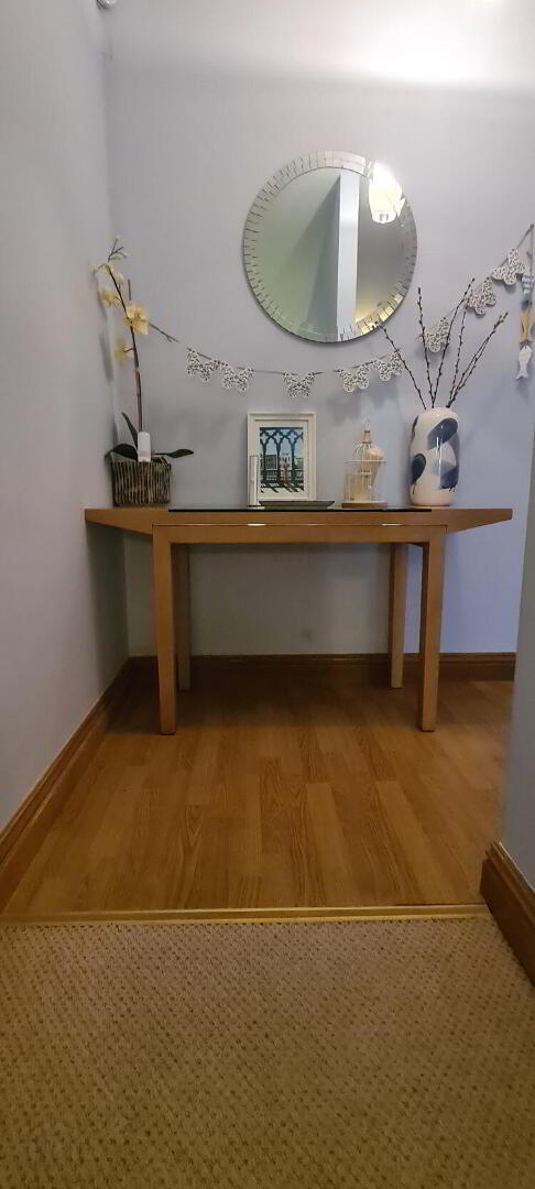 4.69m x 2.28m Inner hallway with laminated flooring, storage heater, storage cupboard, door to living and kitchen area, Airing cupboard.