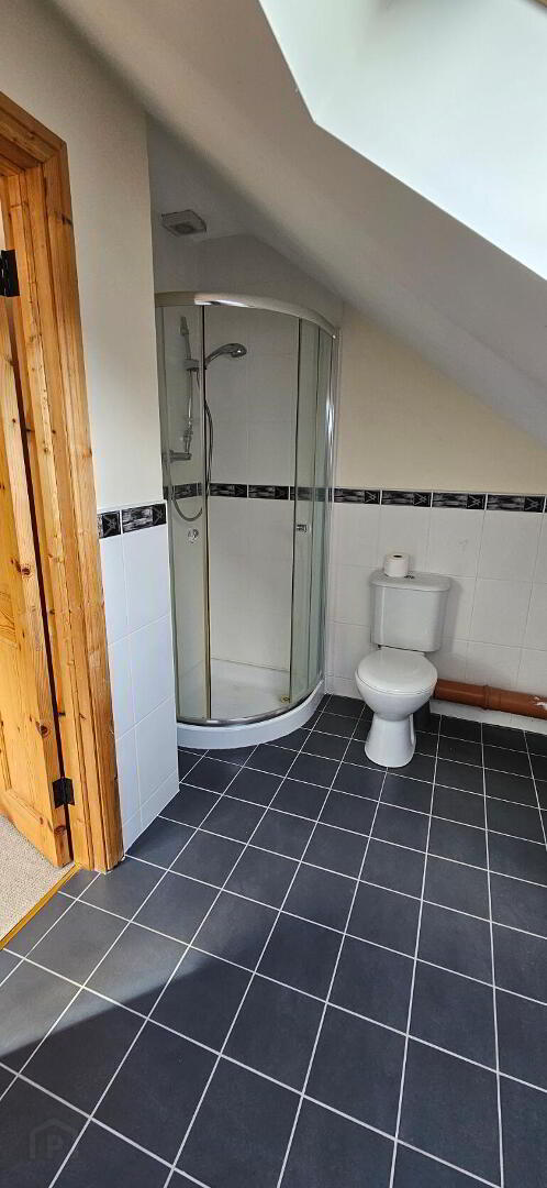 3.33m x 1.59m Tiled floor, velux window, part tiled walls, corner shower cubicle, wc, whb.