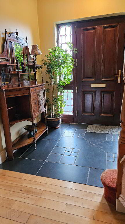 6.49m x 2.38m Tiled entry area, Maple flooring to the hallway, radiator, power points, feature staircase with solid wood and cast iron spindles.