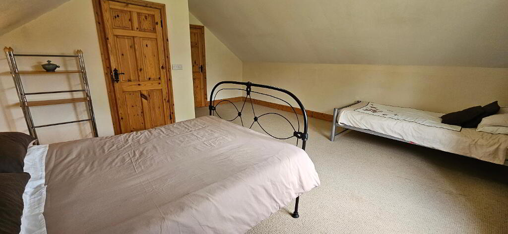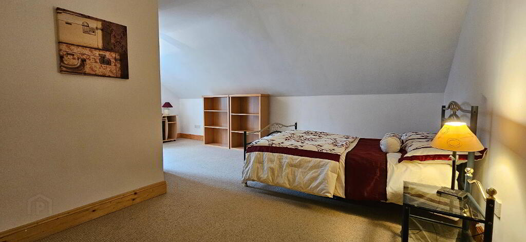 5.63m x 4.99m Dormer style room. carpeted, radiator, tv point, phone point, power points, en suite bathroom.