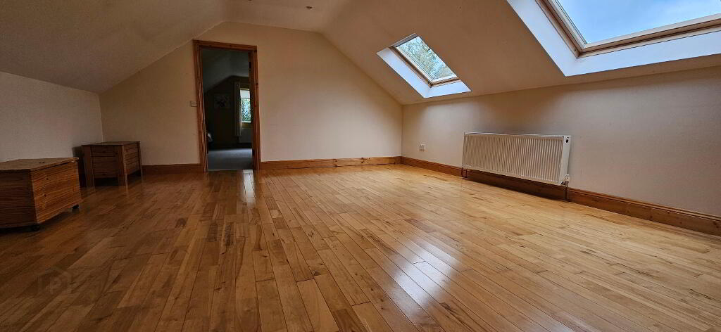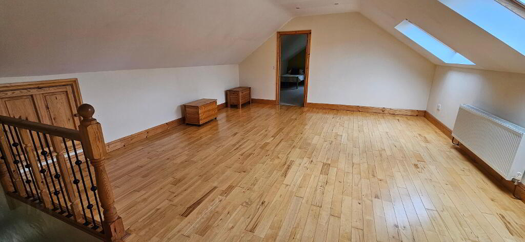 6.25m x 4.97m Maple flooring, large useful space with 2 storage access to side attics, radiator, 2 x velux windows.