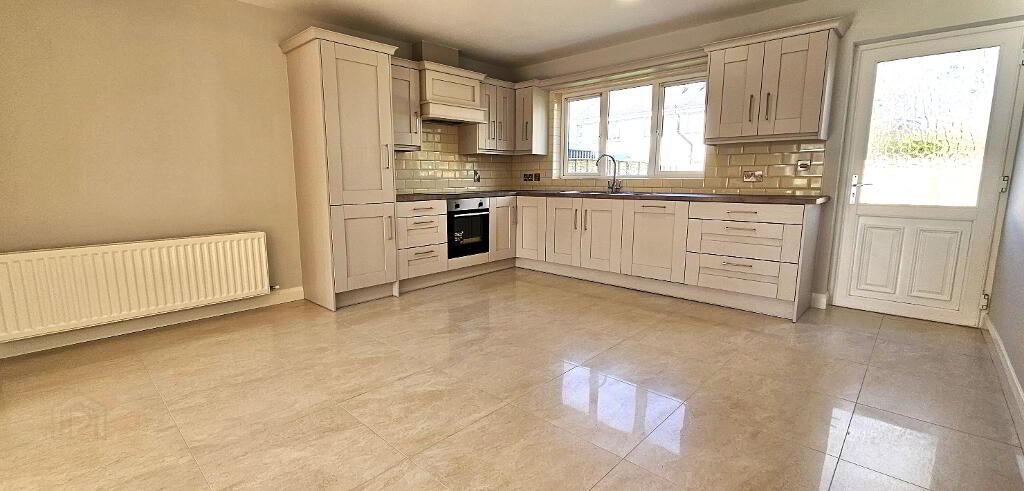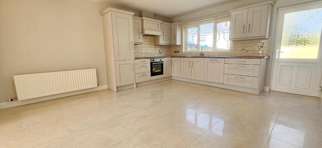 5.13m x 4.32m Tiled floor, newly fitted kitchen with integrated appliances - hob, oven, extractor fan, dishwasher, frisge freezer. Tiled splash back, uPVC back door, laundry cupboard with fitted storage and washing machine, radiator, power points, tv point, radiator.