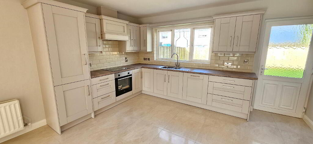 This home has been tastefully modernised throughout, featuring a contemporary fitted kitchen with integrated appliances, high-quality tiling, and brand-new carpeting in all bedrooms. With a spacious, well-laid-out interior and thoughtful finishes, this property offers immediate comfort and style. Set just a short walk from the train station and only a 5-minute drive to the town centre, this location combines convenience with peaceful residential living. Inside, the property is entered via a bright and welcoming central hallway. To the left is a generous living room featuring a bay window and open fireplace, perfect for cosy evenings. To the rear, the large open-plan kitchen and dining area overlook a private, enclosed garden, ideal for family life and entertaining. Accommodation includes three spacious double bedrooms, with the master bedroom enjoying an en-suite. The main family bathroom is spacious and well-appointed. A fold-down stairs provides access to a fully floored attic space, complete with skylight and provision made for electrical, this offers excellent potential for further development into two additional bedrooms and a bathroom.