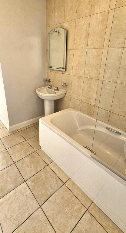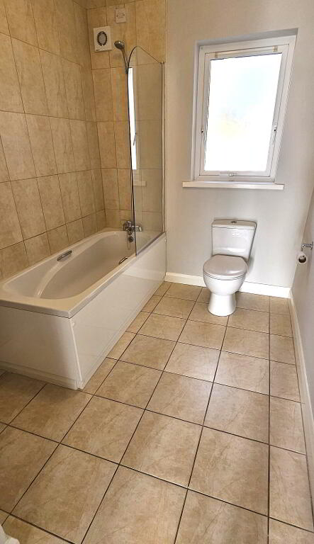 3.56m x 1.97m Tiled floor, bath with tiled surround & shower mixer, whb, wc, radiator, extractor fan.