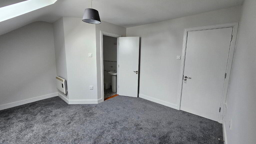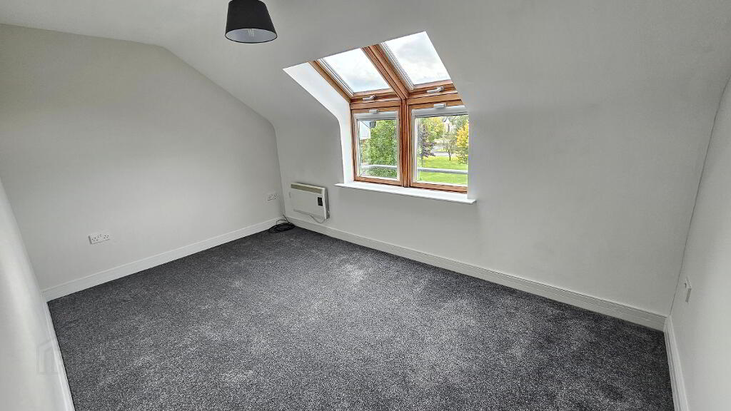 4.20m x 2.66m Situated at the front of the apartment with a large window/roof window overlooking the green area to the front, this bedroom is newly finished and is very spacious. Ample space for a queen size bed and other furnishings.