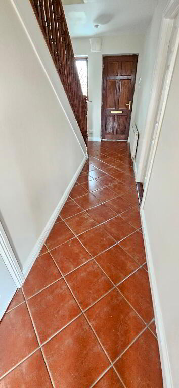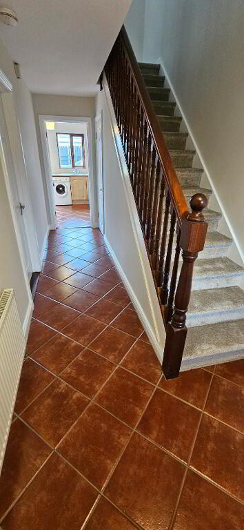 5.19m x 1.98m Tiled floor, radiator, newly carpeted stairs, power points, phone point, storage cupboard under the stairs with light and power point.