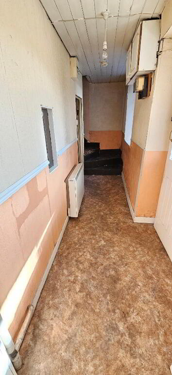 4.48m x 1.04m Entrance hallway with electic storage heater, stairs leading to first floor, door to living room