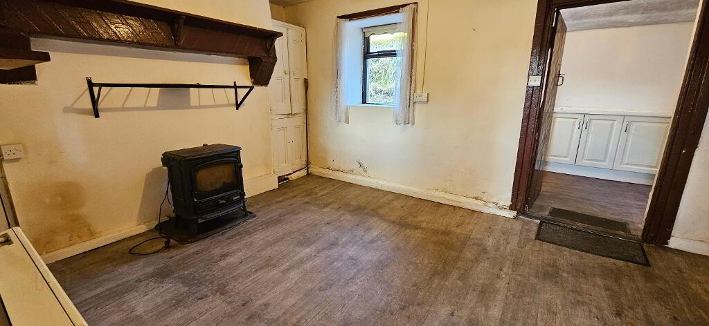 3.03m x 2.87m Sittingroom with window to rear, open fireplace and electric storage heater, timber ceiling, carpeted, power points.
