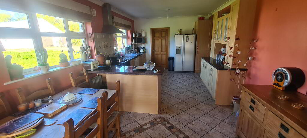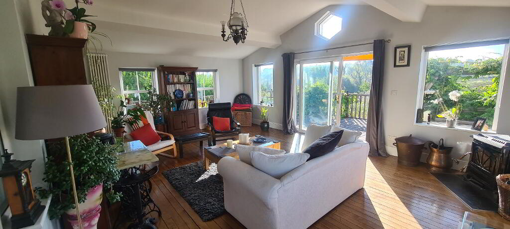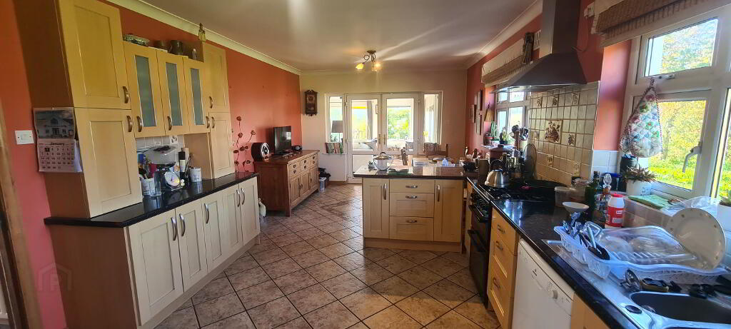 6.74m x 4.94m Very large conservatory/living area with sliding patio doors to decking area, very large room going the whole width of the house an area which is ideal for entertaining family and friends with windows on both sides, wooden flooring, solid fuel stove, double doors through to kitchen, radiators on wall, power points and tv point.