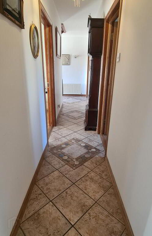 Long hallway to bedrooms, tiled flooring, Airing Cupboard with storage space