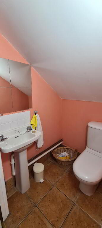 2.63m x 1.21m Ensuite with large shower, wc, whb, window, mirror fully tiled, radiator.