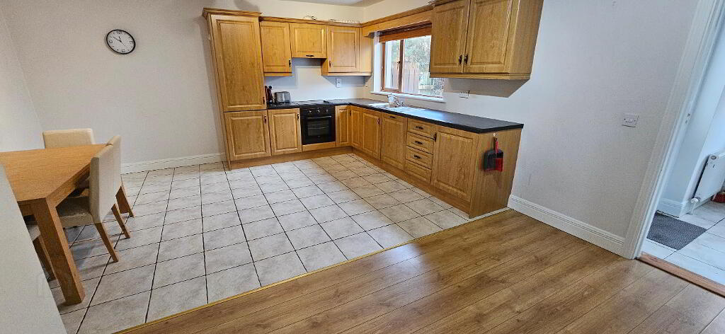 3.25m x 2.55m Large L shaped area with fitted kitchen, integrated fridge freezer, hob/oven, extractor fan and dishwasher, tiled floor, power points tv point, living are approx. 3.252m x 2.545m with laminate flooring, radiator, power point and phone point.