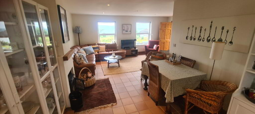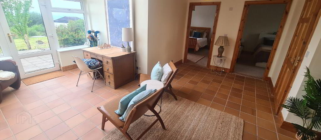 4.32m x 1.88m Large entrance hallway with tiled flooring, radiator, door to hotpress/utility, power points, stira to attic space, Utility has window, tiled floor, open through to living area with views to the garden and Lough Allen beyond.