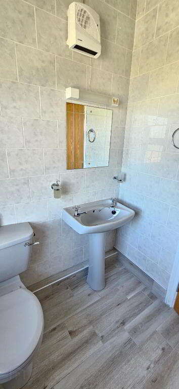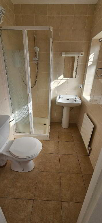1.93m x 1.58m Fully tiled walls, tiled floor, wc, whb, enclosed shower tray with electric shower, radiator, shaving light and socket, electric heater.