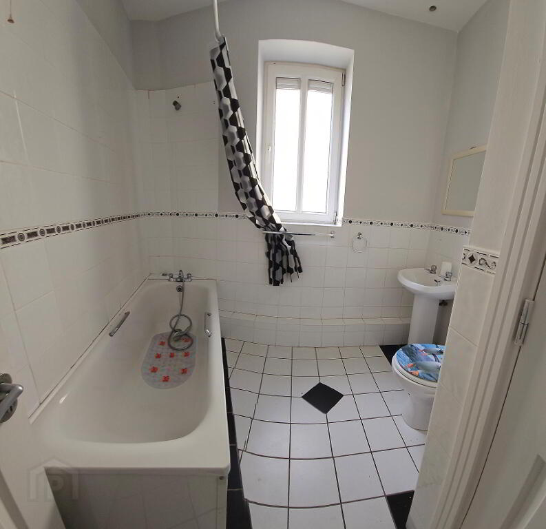 2.37m x 2.19m Tiled floor, bath with shower mixer and tiled surround, part tiled walls, recessed lights, wc, whb, fan heater, hot press.