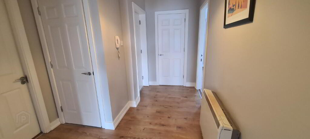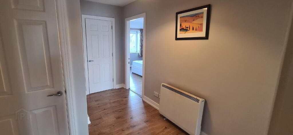 3.99m x 3.76m Double bedroom at the rear of the apartment which is a large room, laminated flooring, 2 no windows, electric storage heater, built in wardrobe, power points.