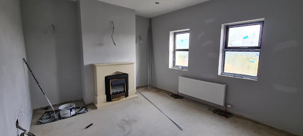 6.94m x 4.89m Recessed lights, power points, 2 x radiators, sliding door to rear, tv point, provision for stove with brick surround.