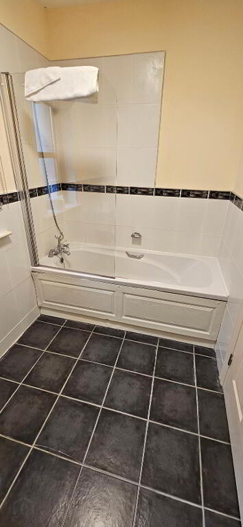 2.88m x 1.71m Tiled floor, part tiled walls, bath with shower mixer & tiled surround, shaving light with socket, extractor fan.