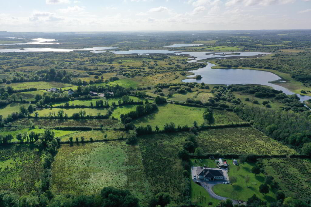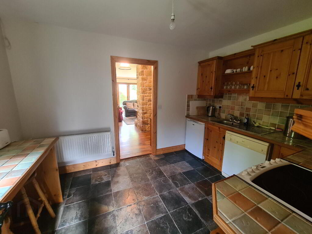 6.04m x 3.70m Impressively large open plan living and dining area which is open and bright with wooden flooring, patio doors to side of house leading to patio area, stone surround open fireplace with a raised hearth, tv and power points, 2 windows to front with fabulous views to Lough Boderg and 2 to the rear, dining area and door leading to kitchen and hallway.
